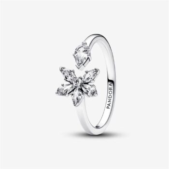 pandora S925 Sterling Silver Sparkling Herbarium Cluster Open Ring