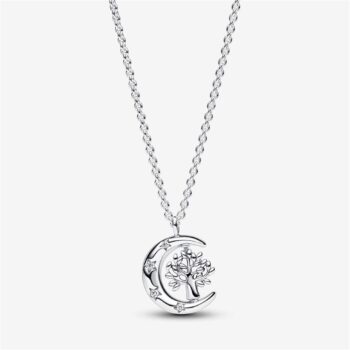 pandora S925 Sterling Silver Moon & Spinning Tree Pendant Necklace