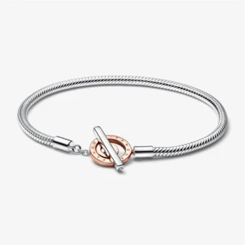 pandora S925 sterling silver Moments Two-tone Logo T-Bar Snake Chain Bracelet