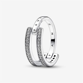 pandora S925 Sterling Silver Signature Logo & Pavé Double Band Ring