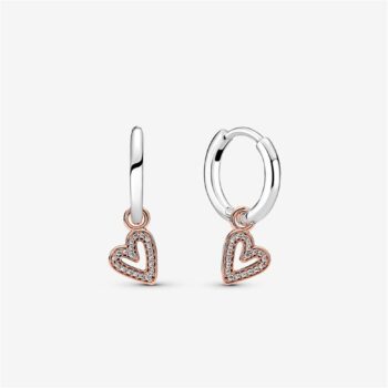 pandora S925 Sterling Silver Double Heart Sparkling Stud Earrings