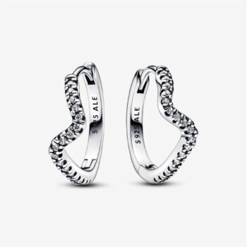 Pandora S925 Sterling Silver Sparkling Wave Hoop Earrings