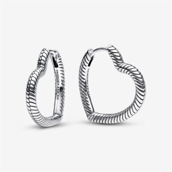pandora S925 Sterling Silver Moments Heart Charm Hoop Earrings
