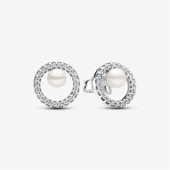 Pandora S925 Sterling Silver Treated Freshwater Cultured Pearl & Pavé Halo Stud Earrings
