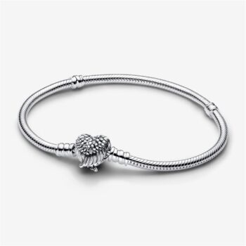 pandora S925 Sterling Silver Heart Wings Clasp Snake Chain Bracelet