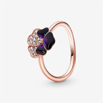 Pandora S925 Sterling Silver Deep Purple Pansy Flower Ring