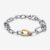 Wear more of what you love with our ME Two-tone Heart Openable Link Chain Bracelet. A pre-styled bracelet, it comes with a combination of large and small sterling silver links, including a rounded rectangular openable link, and a 14k gold-plated elongated heart-shaped openable link inspired by Cupid’s bow. Customise it by switching out the openable links and styling links. Once you’ve curated your link chain, style up to eight mini dangle charms or two medallion charms on the rounded rectangular openable link and up to six mini dangle charms or three medallion charms on the heart-shaped openable link to get the look you love. Please note: the bracelet should be opened with its carabiner clasp not its openable links.