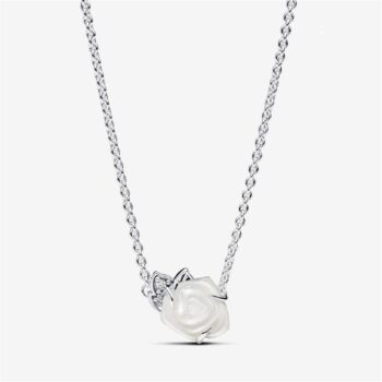 pandora S925 Sterling Silver White Rose in Bloom Collier Necklace